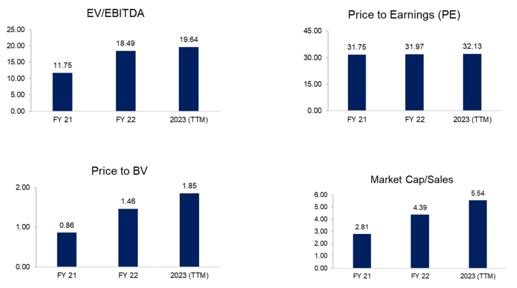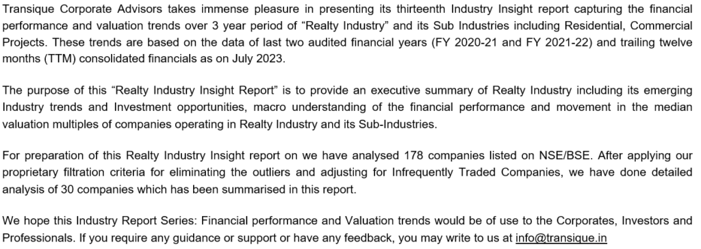 Valuation Multiples Trend analysis for 3 Years of Realty Industry