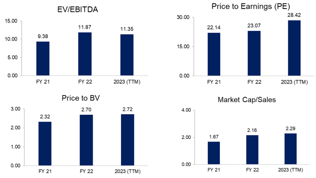 Valuation Multiples Trend analysis for 3 Years of Telecommunication Industry